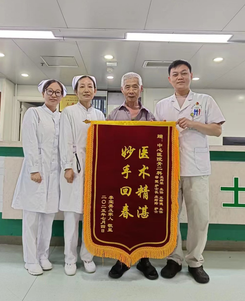 李奶奶家人向医疗团队送锦旗致谢(通讯员 供图)
