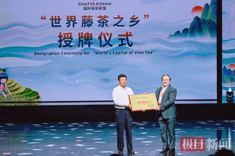 国际慢茶联盟授予来凤“世界藤茶之乡”(图源:来凤县融媒体中心)
