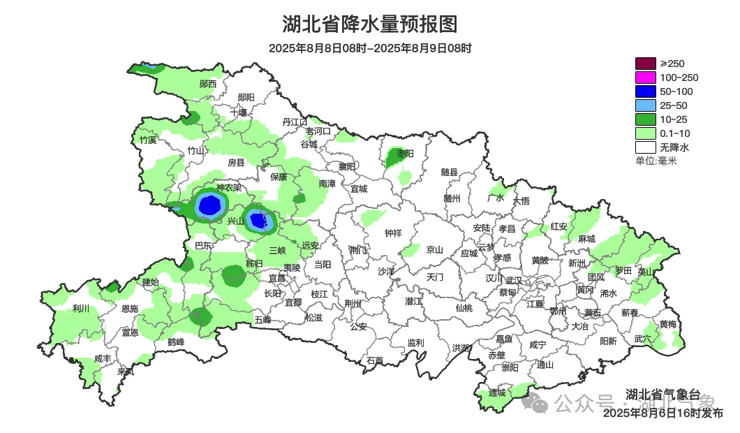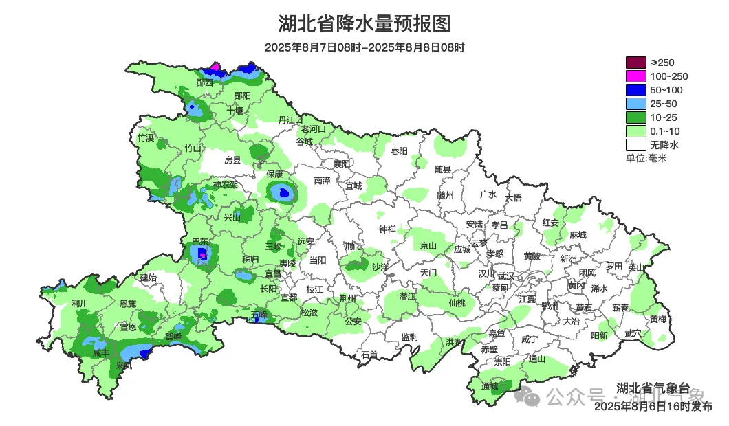 预报来源:湖北省气象台2025年8月6日16时预报