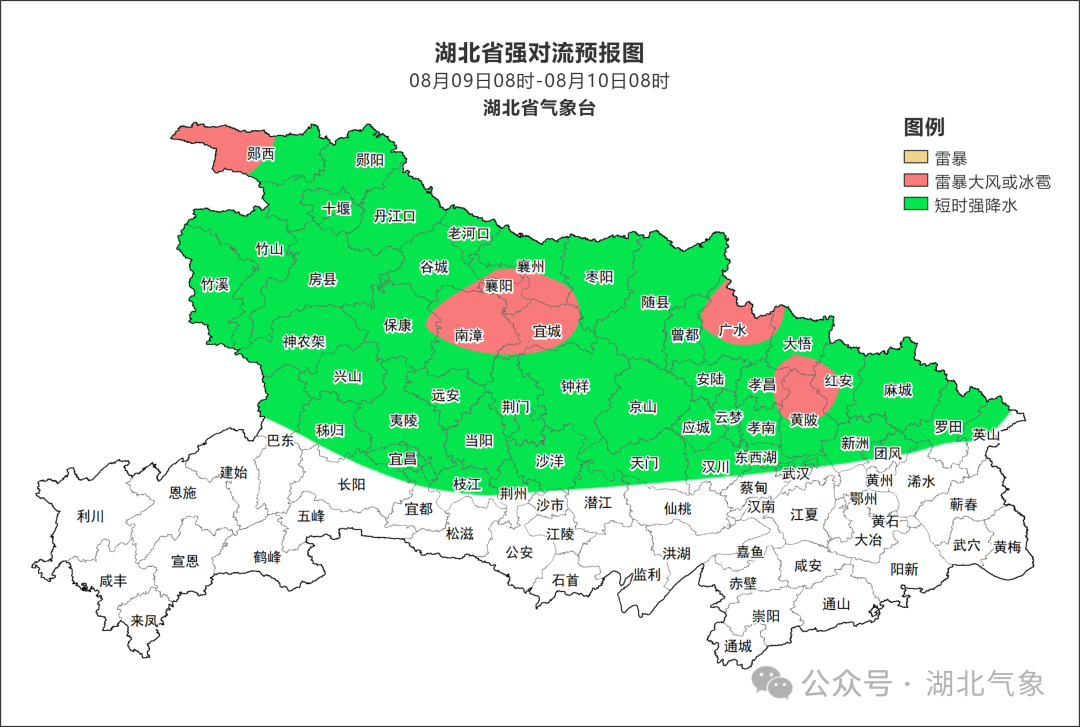 湖北省气象台2025年08月09日06时47分发布强对流橙色省级预警: