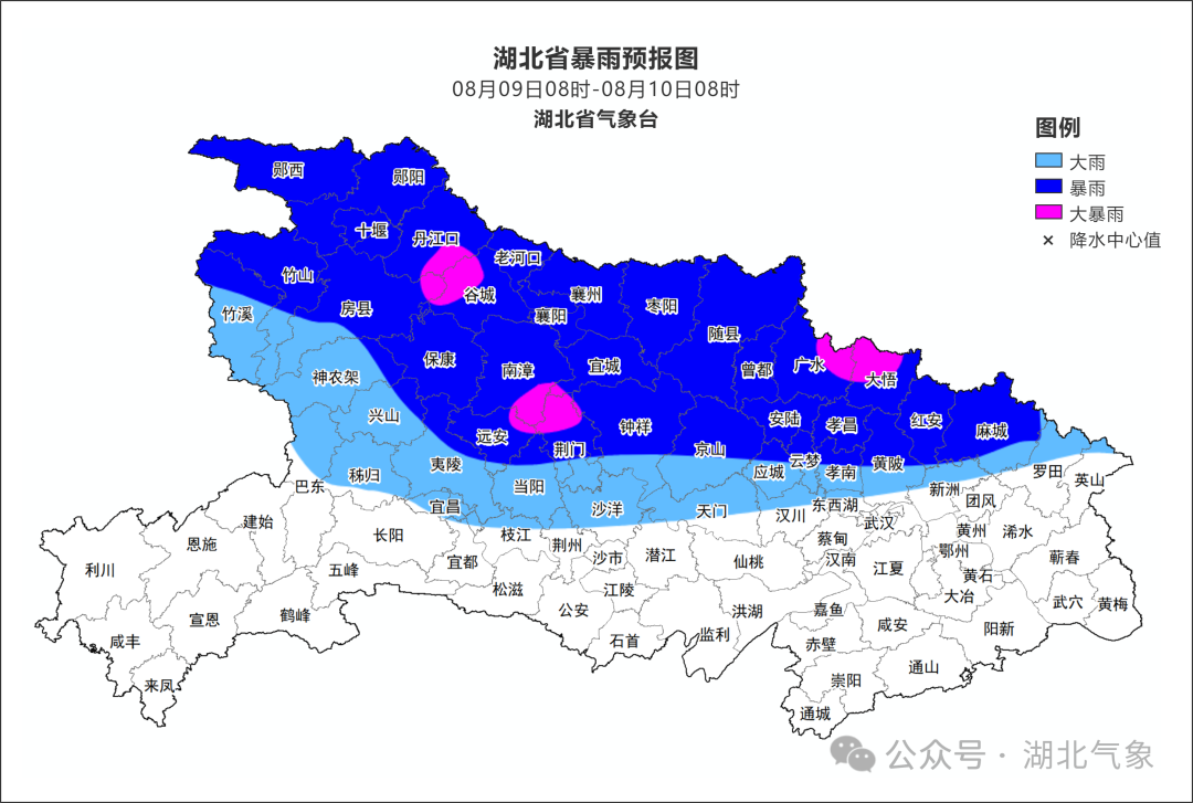 湖北省气象台2025年08月09日06时26分发布暴雨橙色省级预警: