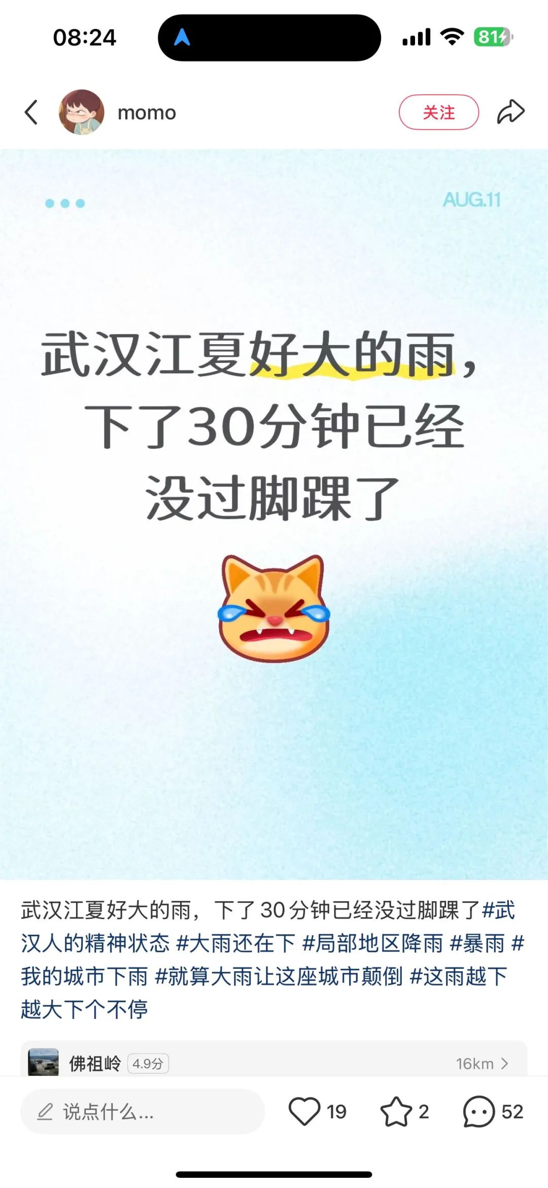 新洲部分街道(乡镇)仍有暴雨到大暴雨