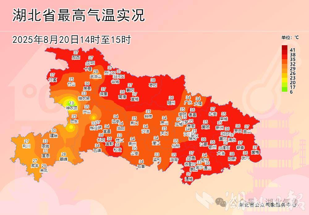 本周后期会一热到底吗?预计21日十堰、恩施、荆门等地将暂时退出“高温群聊”,荆州、随州等地以及东部一带高温依旧。湖北省气象台20日15时53分发布高温黄色省级预警,预计21日白天,襄阳、随州、宜昌、天门、仙桃、潜江、荆州、孝感、武汉、鄂州、黄冈、黄石、咸宁等地最高气温将升至35℃以上,其中武汉、鄂州、黄冈、黄石、咸宁局地可达37℃以上。