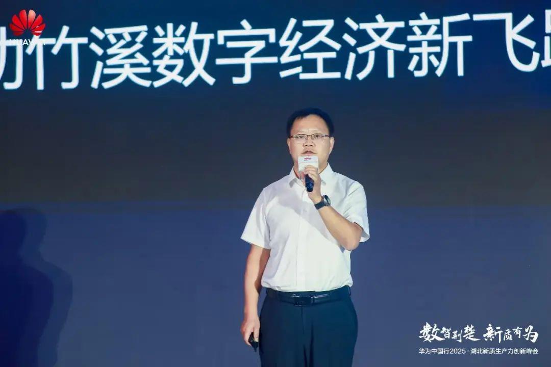 十堰市竹溪县人民政府党组成员、副县长郭稼在主题演讲中表示,人工智能成为发展数字经济的基础引擎,“加快发展新质生产力成为共识”。竹溪依托优质生态资源与区位优势,规划并建设了基于华为、科大讯飞核心技术的650P算力中心。这不仅为本地企业提供了普惠算力服务,还助力农业、政务、文旅等多领域场景应用。