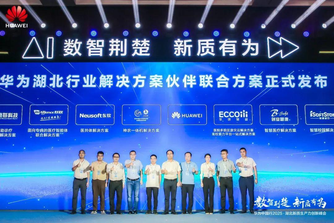 [中国,湖北,2025年8月20日]以“数智荆楚,新质有为”为主题的华为中国行2025·湖北新质生产力创新峰会在宜昌成功举办。多位政府领导、行业大咖及业界专家、企事业单位代表与合作伙伴代表等齐聚一堂,聚焦人工智能技术赋能数字经济发展,共同探讨数智时代创新突破新趋势。会上,举办了湖北宜化集团和华为联合创新中心揭牌仪式、华为湖北行业解决方案伙伴联合方案发布仪式、华为湖北鲲鹏昇腾生态伙伴部件及解决方案发布仪式等重磅发布活动,同时分享了医疗、教育、制造等行业的创新实践成果,旨在加速AI创新和数实融合,助推湖北发展新质生产力,谱写湖北高质量发展新篇章。