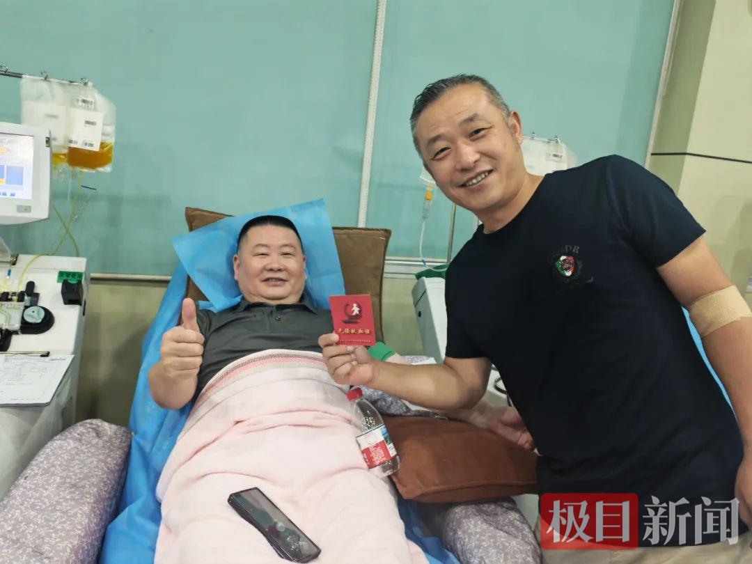 献血服务科副主任张红云(左)和安保科副主任陶强(右)参加献血