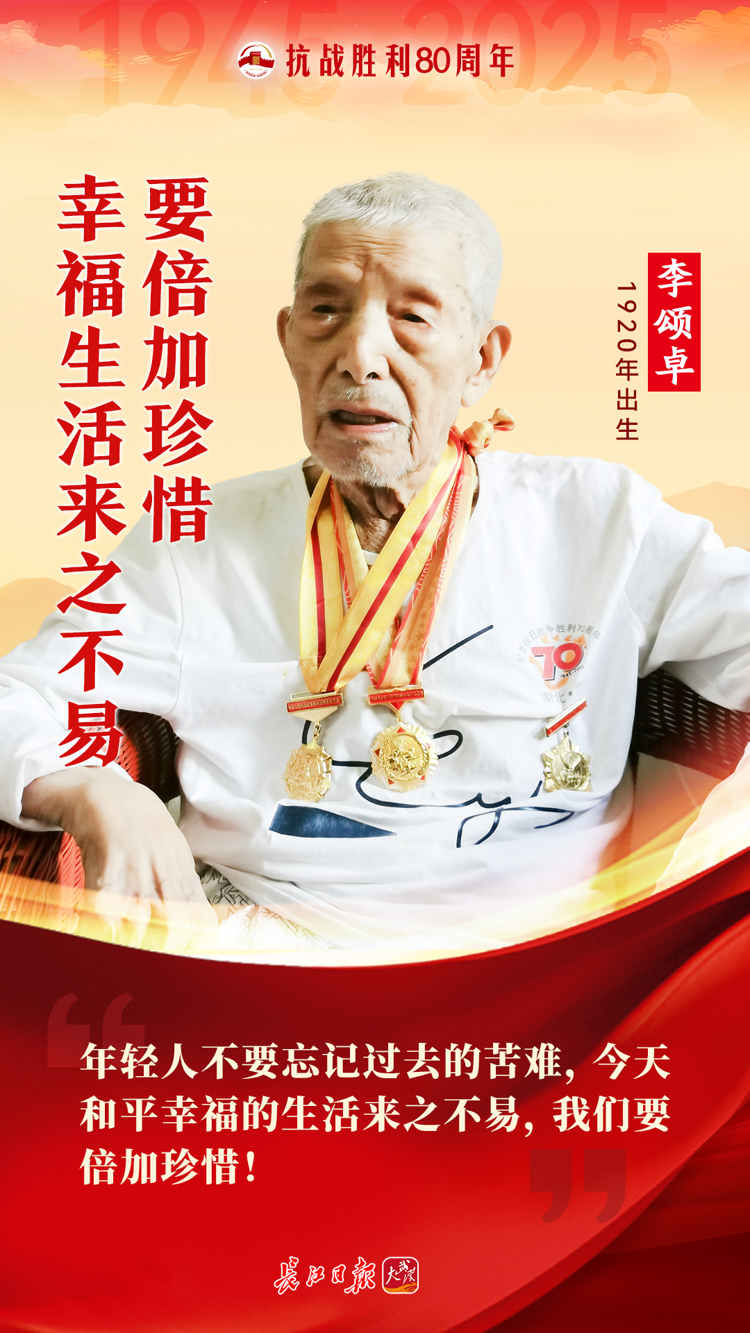 李颂卓说:“我希望年轻人不要忘记过去的苦难,今天和平幸福的生活来之不易,我们要倍加珍惜!”
