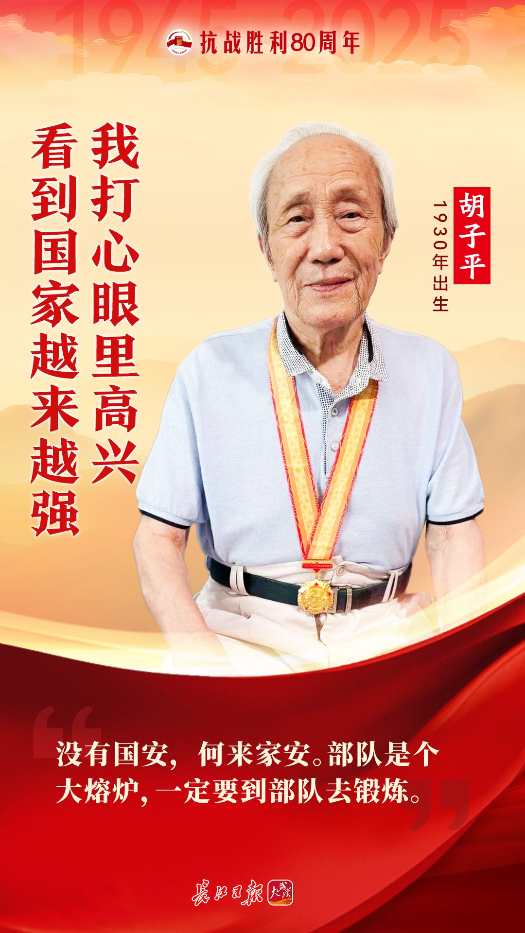 目睹和见证新中国成立75周年以来取得的巨大成就,胡子平老人感慨万千:“看到国家越来越强、湖北越来越好,我打心眼里高兴。希望年轻人能铭记烽火岁月,一代代传承伟大抗战精神,把祖国建设得更强大。”