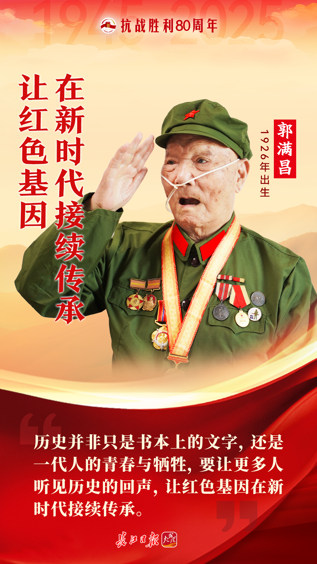 “你们用生命守护山河,我们要用行动传承精神。历史并非只是书本上的文字,还是一代人的青春与牺牲,要让更多同龄人听见历史的回声,让红色基因在新时代接续传承。”受郭老事迹感召,王家宬在学习之余,手绘还原前线奋战场景的文化衫送给郭老,并将郭老的故事写进作文《百年烟雨忆红船》,文章在校刊上发表,推动红色故事在校园传播。