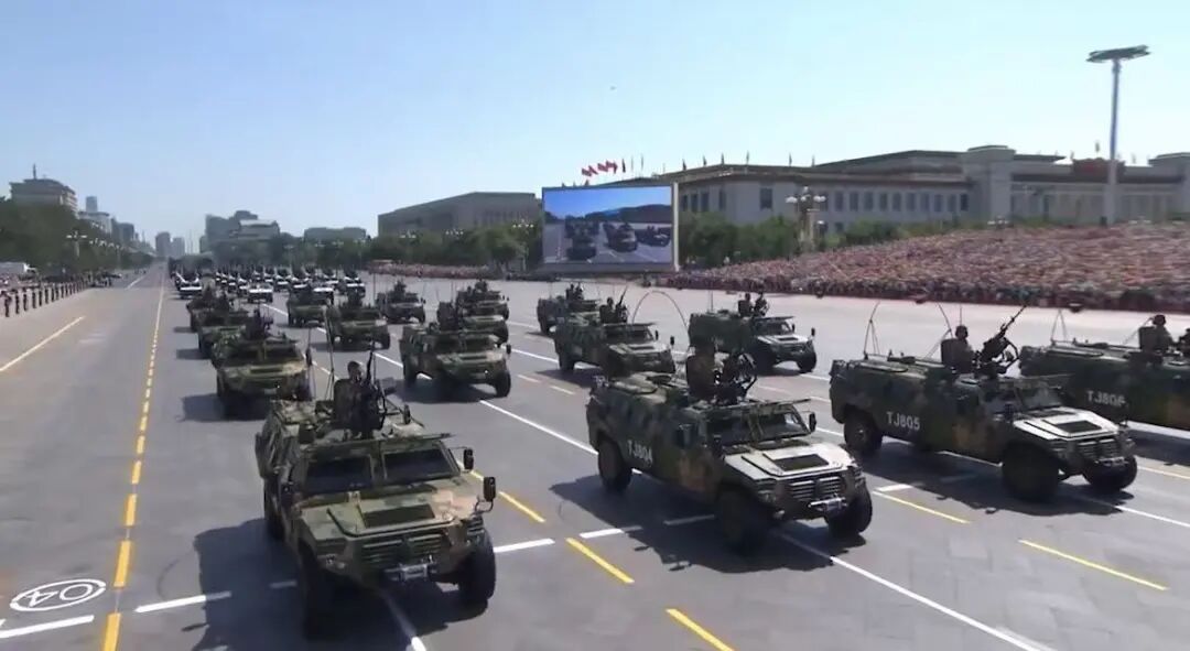 95辆东风车顺利通过天安门,包括64辆军车、31辆游行彩车。
