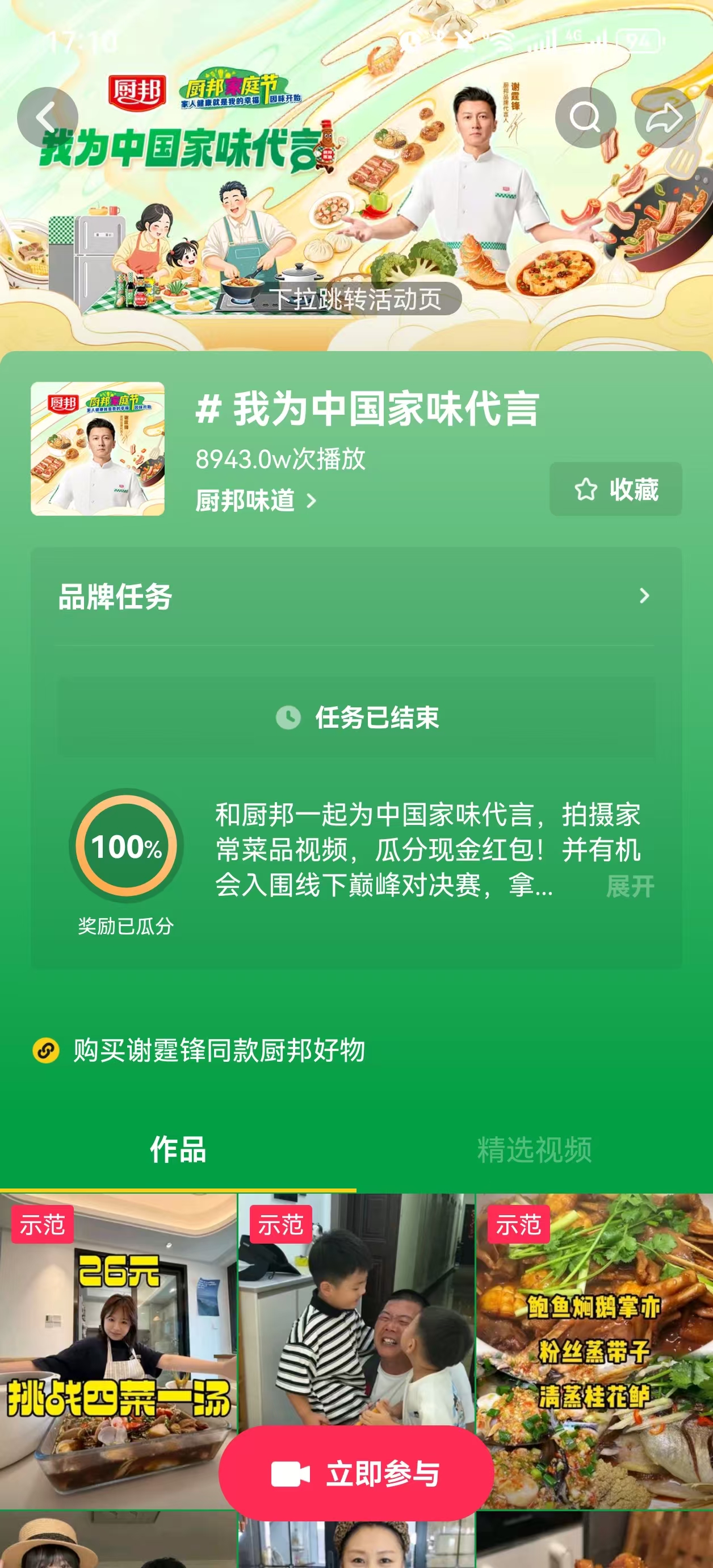 为最大范围引爆声量,厨邦在抖音发起挑战任务,巧妙借助平台达人的创作力与影响力,带动万千用户参与话题互动。从美食KOL到生活分享家,多元化的内容创作使#我为中国家味代言#与#厨邦家庭节#双话题持续升温,形成了一个温暖而活跃的线上社区。随着征集结束,活动进入严谨的初选评分阶段,并公布了最终闯入决赛的名单。