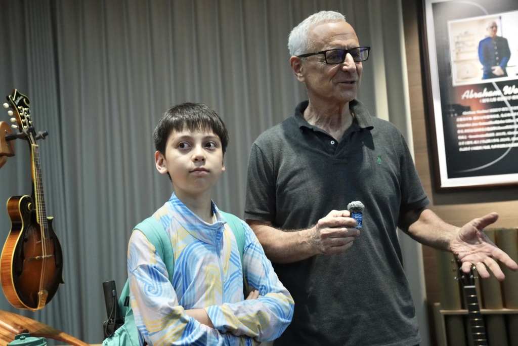 9月18日,美国制琴大师亚伯拉罕和儿子在其位于松滋市文化创新产业园的工作室。澎湃新闻记者 王岱玉 图
