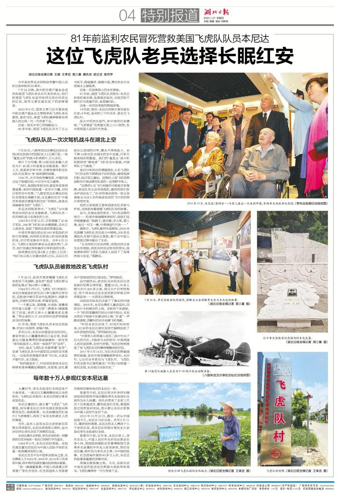 3篇稿件,从讲故事、讲感情到讲世界观、价值观,突出中美人民的情谊连接,表达中美友谊不断深化的主旨。7月26日,报道小组提前在来汉的高铁上专访了格林。当晚,湖北日报微信公众号在高铁抵汉的第一时间发布推文《刚刚!他们连夜抵达武汉!》;次日,湖北日报头版头条刊发消息《飞虎队老兵后代寻访英雄之城》,链接整版特别报道《81年前监利农民冒死营救美国飞虎队队员本尼达 这位飞虎队老兵选择长眠红安》,在飞虎队后代湖北之行的报道中夺得先机。