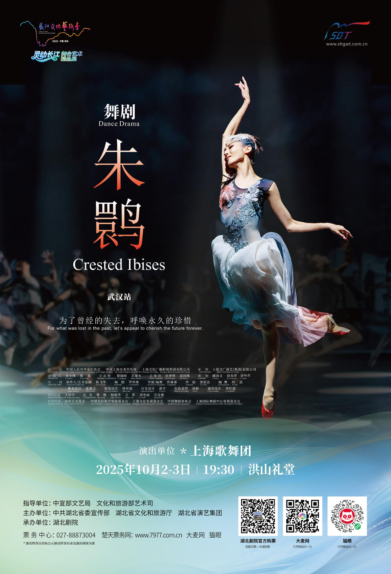 金秋时节,长江之畔,好戏连台。2025长江文化艺术季“灵动长江”舞台艺术精品展重要剧目之一、由上海歌舞团创作演出的唯美舞剧《朱鹮》,将于“十一”期间(10月2日、3日晚)在洪山礼堂精彩上演。