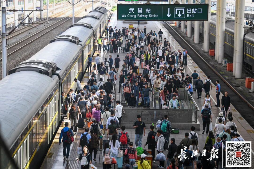 10月7日,武昌火车站迎来返程高峰。记者史伟 摄