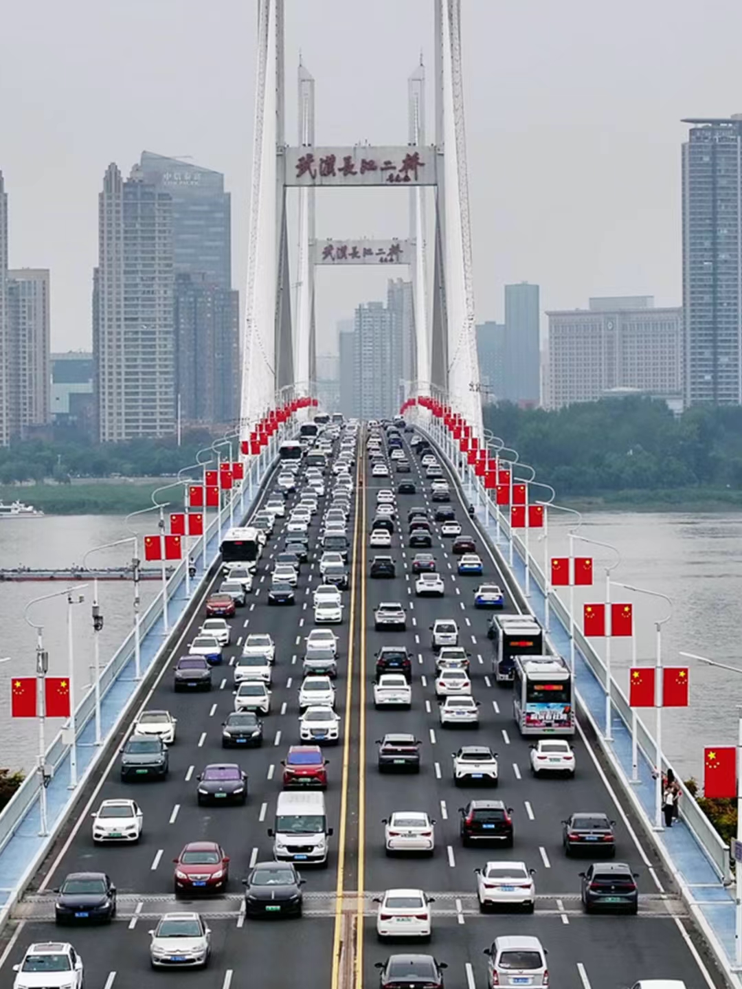 高空镜头拍下国庆期间武汉长江二桥上车流。 通讯员李佳 供图