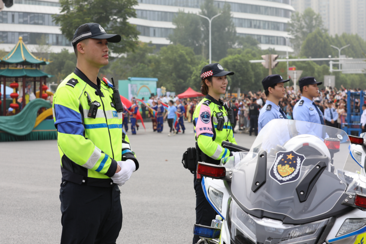 东湖高新交警在花车巡游活动现场维护交通。 通讯员李佳 供图