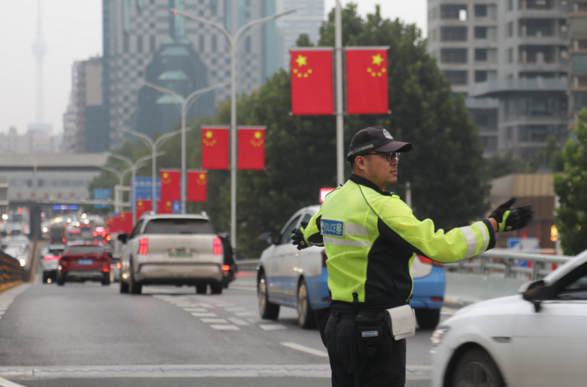 2025年国庆期间,武汉交警街头护航交通。 通讯员李佳 供图