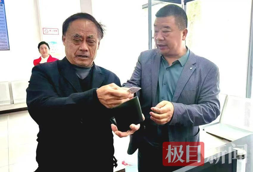 11月5日9时20分许,孝昌开发区关王社区残疾人邹军平,从71岁退休教师刘彦桥手中接过遗失的钱包,激动地连声致谢。