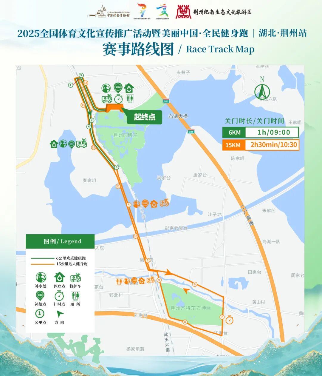 本次活动设6公里欢乐健康跑和15公里达人健身跑两个项目,总规模3000人。其中,6公里欢乐健康跑限报1000人,15公里达人健身跑限报2000人。赛事起终点均设在荆州园博园北门。