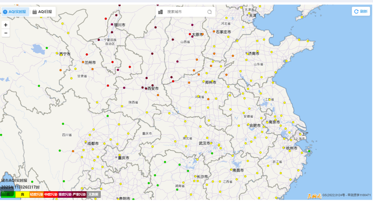 11月26日17时湖北省及周边地区空气质量实况