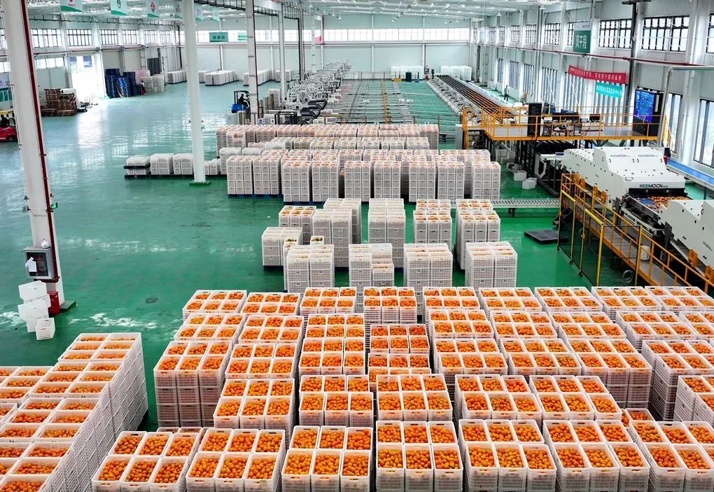 “11月份每天200名工人加班加点。分拣、包装、装箱、称重,加工线满负荷运转,每天可加工400吨新鲜柑橘。”张芝新介绍。