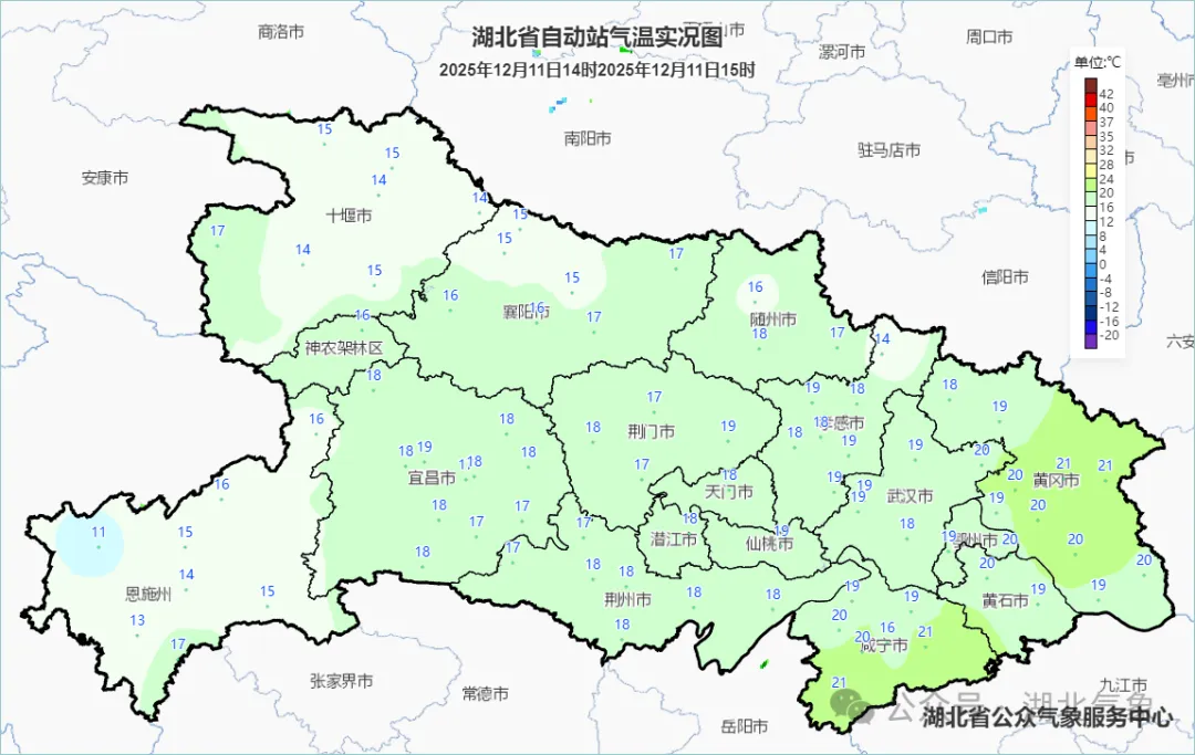 午后3点十堰、襄阳、恩施气温为14~16℃