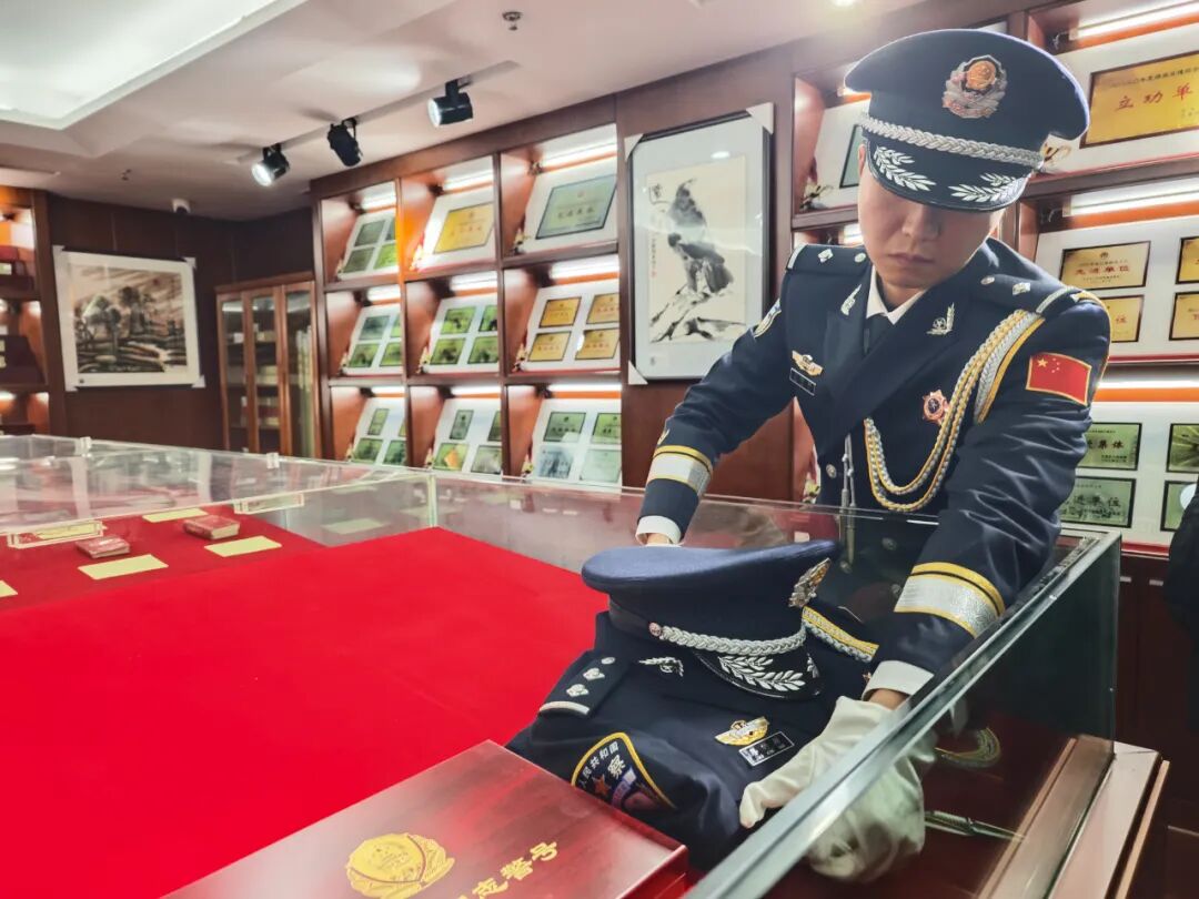 “敬礼!”伴随着雄壮的《中国人民警察警歌》,全体人员举起右手致敬,目送昔日战友的警号被移送至分局警史馆。