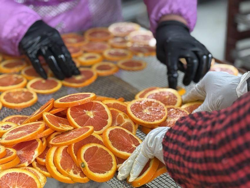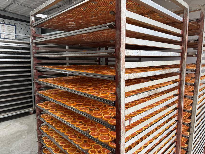 自2024年5月投产以来,加工厂已累计收购鲜橙300吨。每8斤鲜橙可烘制成1斤柑橘片,产品通过订单模式稳定外销。其中品质优良的柑橘片作为香料出口至英国、意大利、瑞典等地,其余则成为各类果茶原料,市场反响良好。该项目已为附近村民提供13个常年就业岗位,并逐步构建起“种植——收购—加工—销售”一体化产业链,实现群众增收与产业升级双赢。