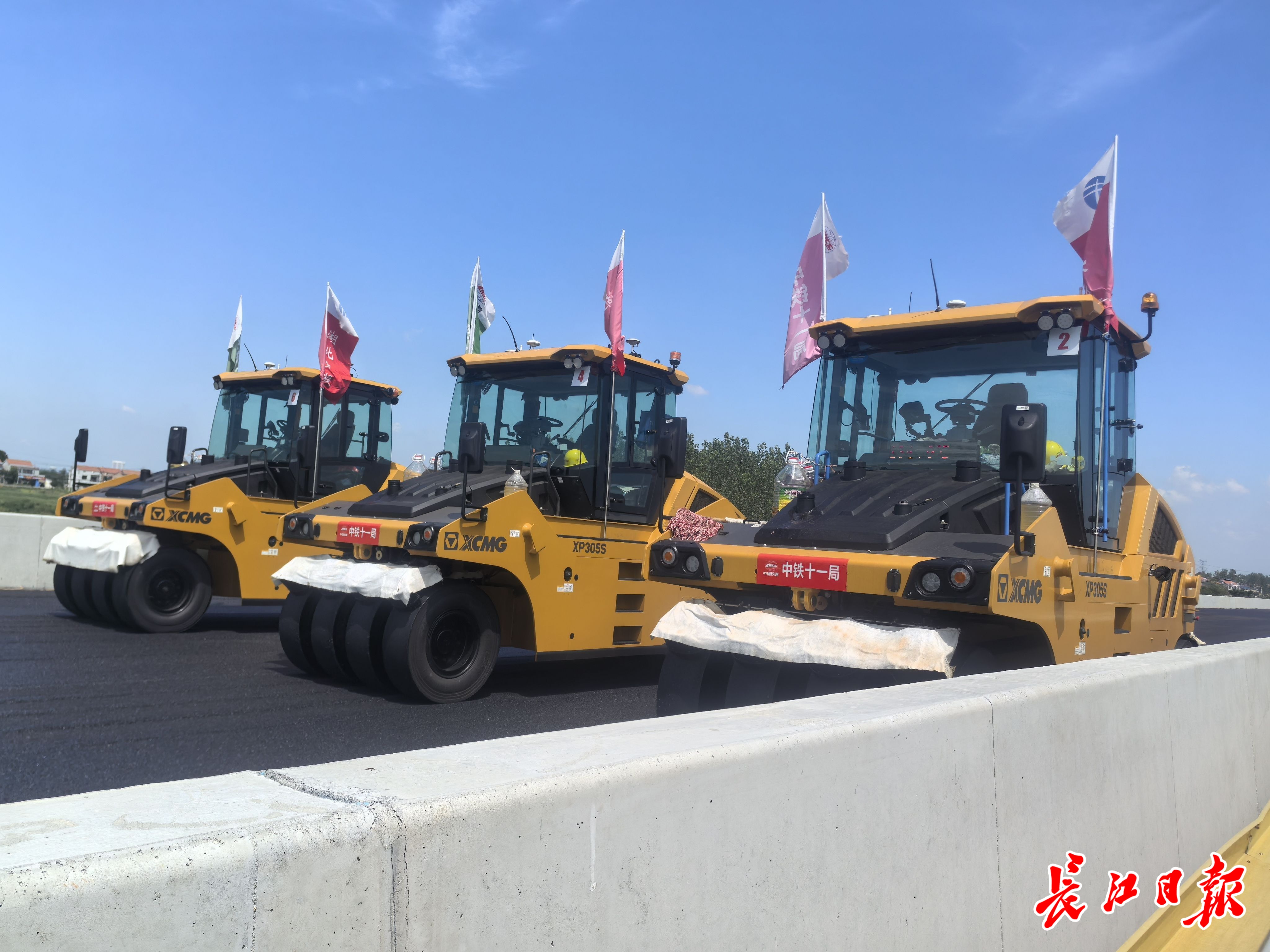 武汉新港高速公路无人摊铺现场。 通讯员刘若梅 摄