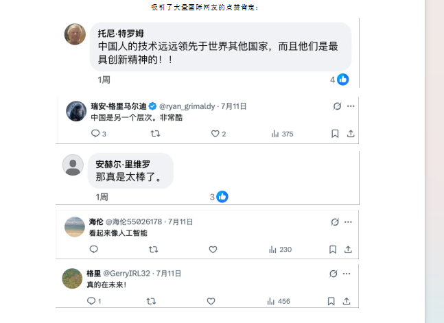 7月11日,外交部新闻司司长、发言人毛宁在社交平台上,发文并配图宣传:“5G智慧基础设施!在中国中部的湖北省,无人驾驶摊铺机在高速公路施工现场作业,实现毫米级平整度控制,效率提升25%。”她把武汉双柳长江大桥的无人驾驶摊铺技术作为中国高质量发展和科技进步的例证,积极向世界介绍。