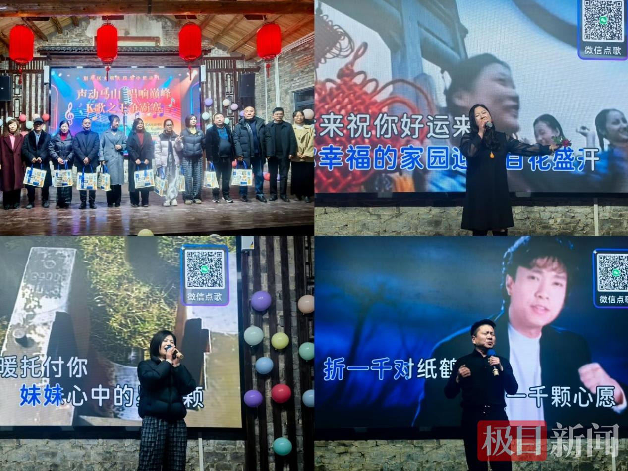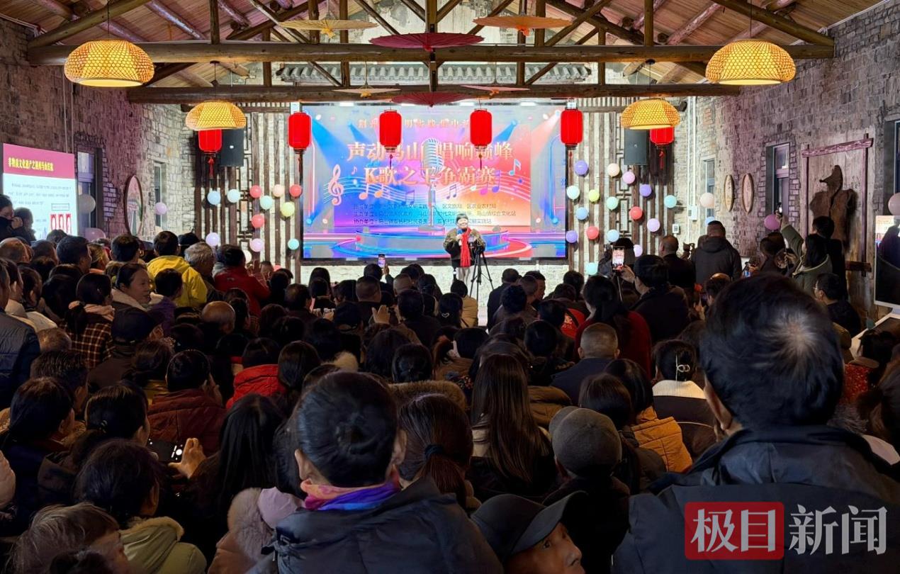 室内“百姓舞台”上,“村K”争霸赛精彩纷呈。参赛选手神采奕奕,用嘹亮歌声演绎经典民歌、时代新歌……引来台下掌声阵阵、喝彩不断。马山民歌传承人唐宜芳老师登台献唱融入党的二十届四中全会精神的改编曲目《马山民歌唱党的二十届四中全会》,将非遗文化与政策宣传深度融合,让政策精神随乡音入人心。
