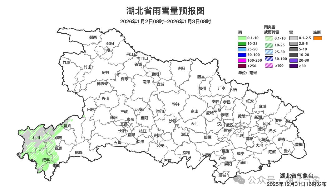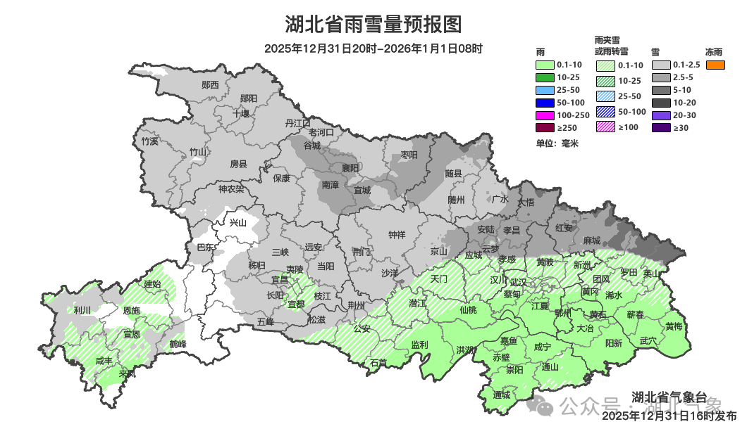 预报来源:湖北省气象台2025年12月31日16时预报