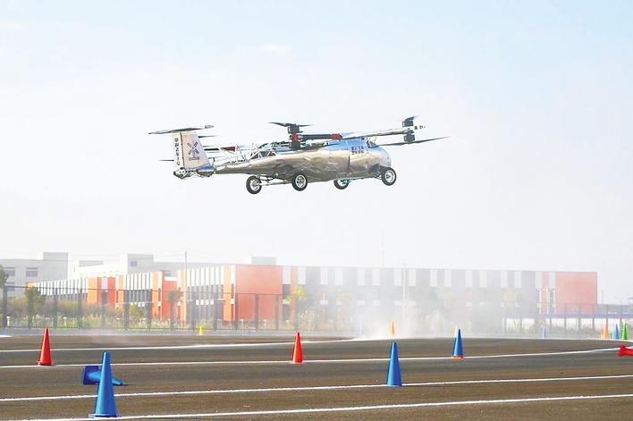 飞行汽车在仙桃试飞测试。(湖北日报全媒记者 薛婷 王际凯 摄)