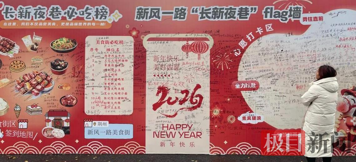 元旦假期,主办方还联合街区优质商户,推出了“长新夜巷必吃榜”评选活动,不少游客在必吃榜打卡墙上贴上心目中的“美食好物”。