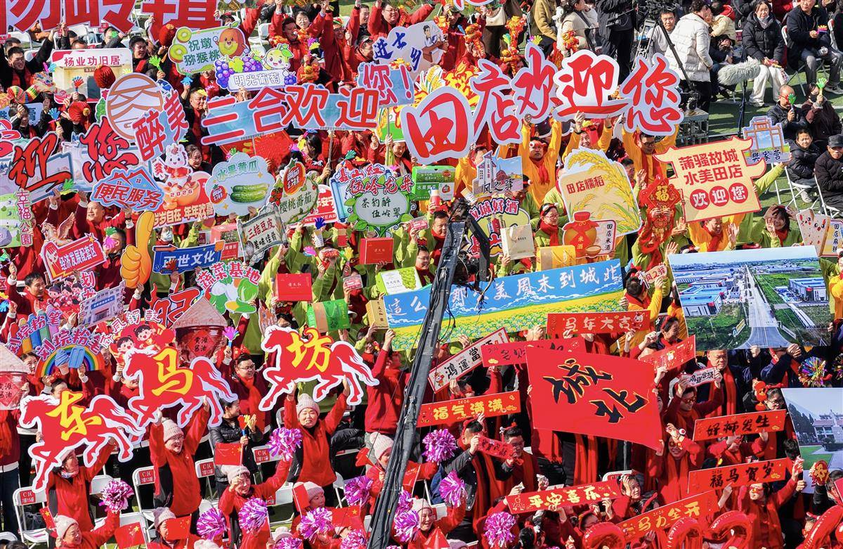 活动现场,文艺表演同样精彩纷呈。央视“农家院里过大年”特别节目走进应城,与本土主持人联动,以趣味叙事再现应城从“膏都盐海”到“幸福之城”的发展历程。原创情景剧《田埂直播间》生动演绎乡村致富故事,实验小学孩子们带来的京剧《定军山》则用稚嫩唱腔传递传统戏曲魅力,快板舞《喜迎新春送福来》更将全场带入喜庆祥和的节庆氛围。