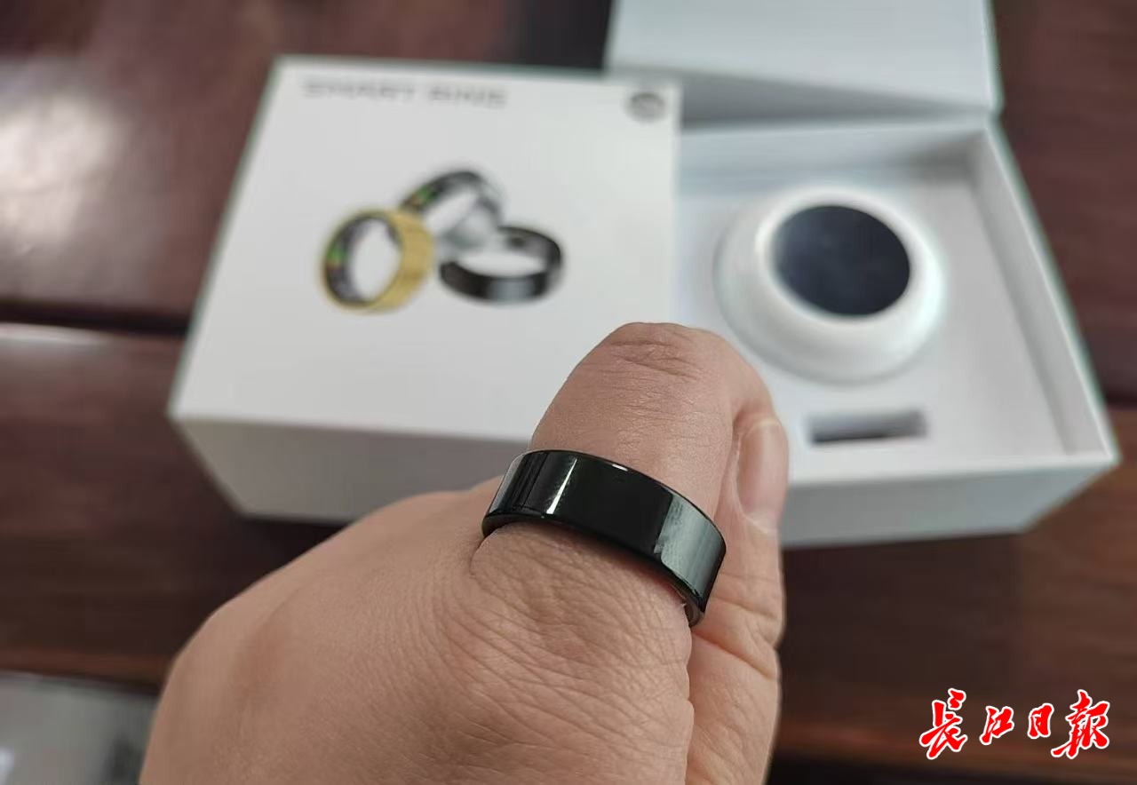 能监测血压、血氧、睡眠并发出久坐提醒的智能戒指。记者刘晨玮 摄