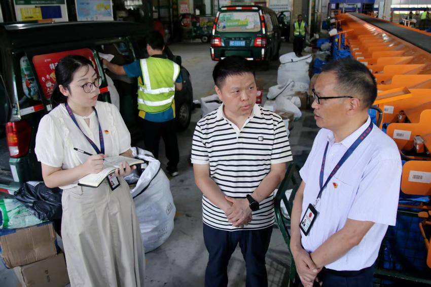 2025年7月,十堰市郧阳区纪委监委工作人员结合群众身边不正之风和腐败问题整治工作在寄递物流中心一线走访。(十堰市郧阳区纪委监委供图)
