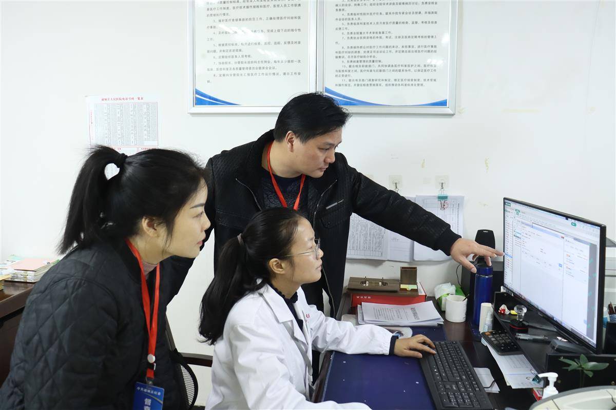 通城县纪委监委以“室组”联动方式深入该县人民医院,对医用耗材出入库管理和使用情况进行监督检查。(通城县纪委监委供图)