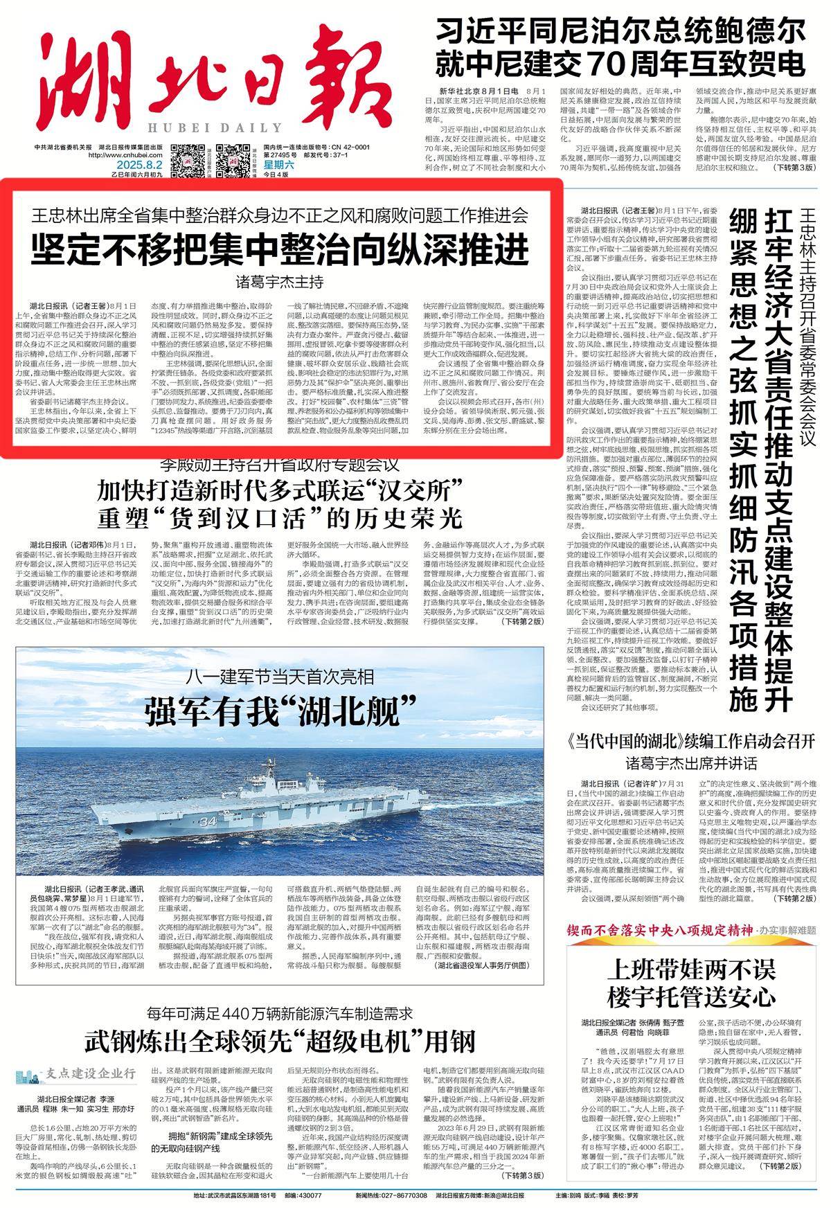 2025年,省委主要负责同志多次出席工作推进会、专题调度会,部署、调度、推进集中整治群众身边不正之风和腐败问题工作。湖北日报在头版多次报道。上图为其中的一次报道版面。