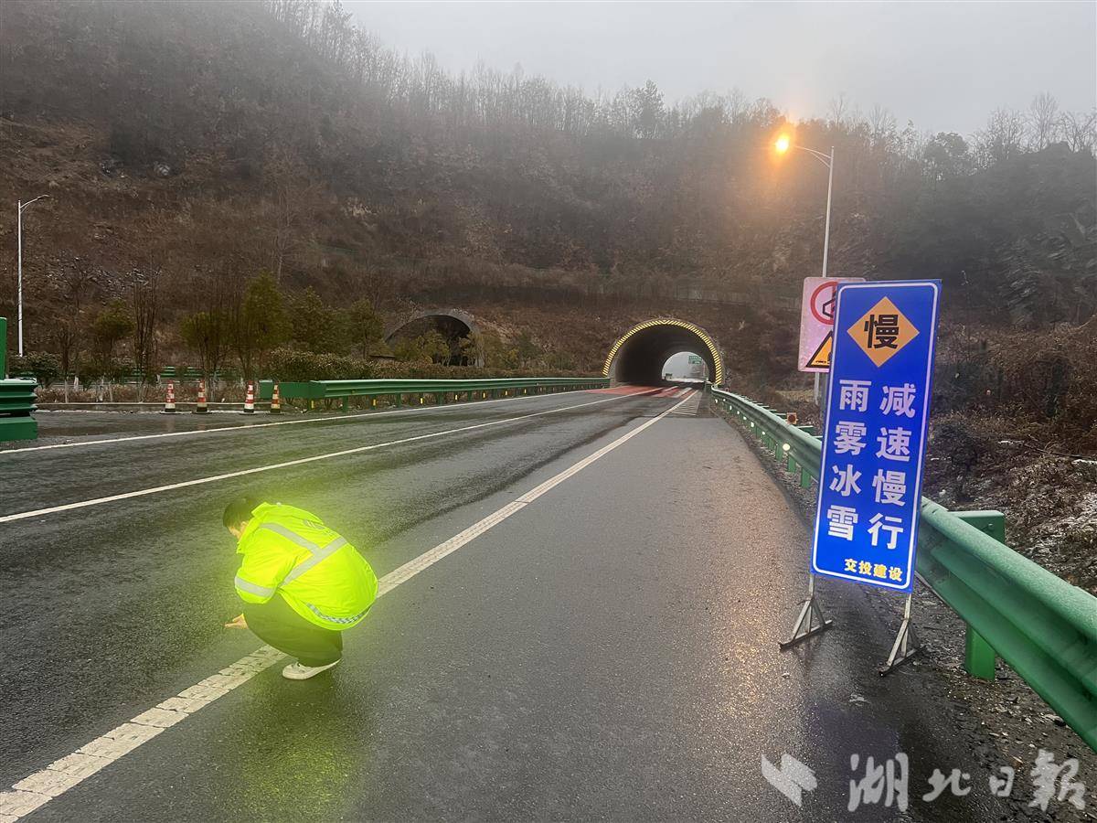 当天,降雪主要集中在鄂西、鄂西北地区,福银高速襄阳段部分路段最大积雪达10毫米,沪渝高速长阳段金龙隧道入口处气温低至零下,出现降雪。许广高速随岳北段、麻安高速随州西段陆续出现降雪天气,气温低至零下3摄氏度。部分地区伴有冻雨,道路结冰风险极高,给全省高速公路安全畅通带来严峻挑战。