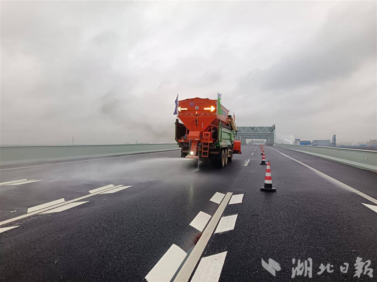 为此,湖北交投集团立即启动除雪保畅作业,调配除雪车、撒布车等设备,预防性撒布融雪剂并对积雪路段循环除雪,全力清除积雪、防范结冰,确保“即下即清、雪停路净”。目前,已储备融雪剂3.8万余吨,布设应急仓库224个,组建141支专业应急队伍,配齐1594台除雪撒布一体机等主战设备。针对雪情较重片区及跨江大桥、风口垭口等高危路段,按“加倍储备、靠前存放”原则增补融雪剂,确保物资拿得出、用得上。同时配备116套“移动式挪车平台”,配合交警部门防范交通事故引发的长时间拥堵。