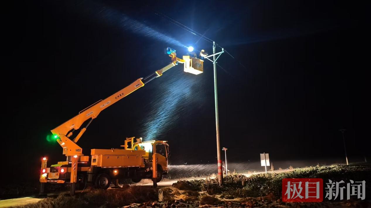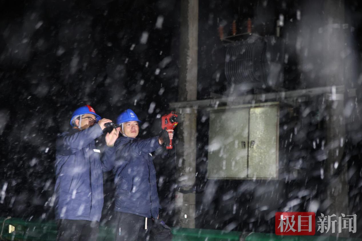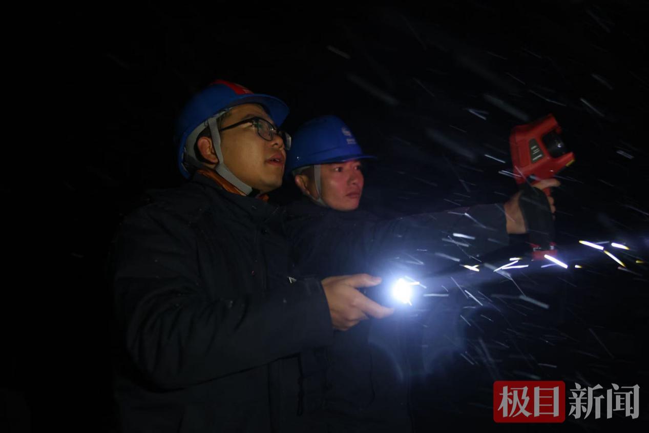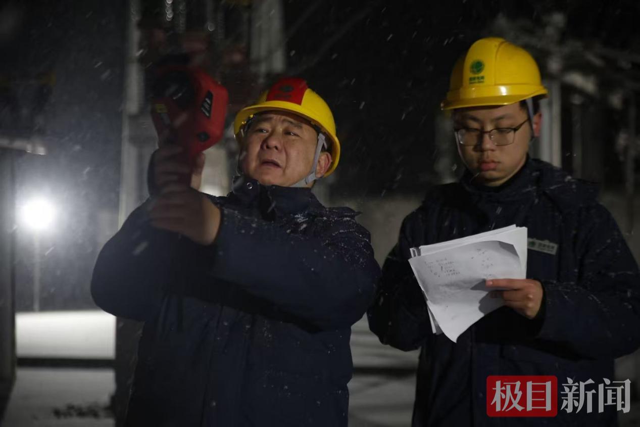 1月20日凌晨,国网洪湖市供电公司工作人员对辖区内35千伏输电线路和变电站及10千伏配电线路开展特巡特维,全力保障电网稳定运行。(极目新闻通讯员 赵有鑫 摄)