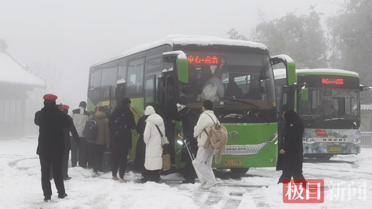 1月20日下午2点,湖北十堰市公安局武当山特区分局和武当山景区综合执法大队联动发力,调度6辆大巴车,全程护送返程游客安全下山。下午4点,所有游客安全到达游客服务中心。