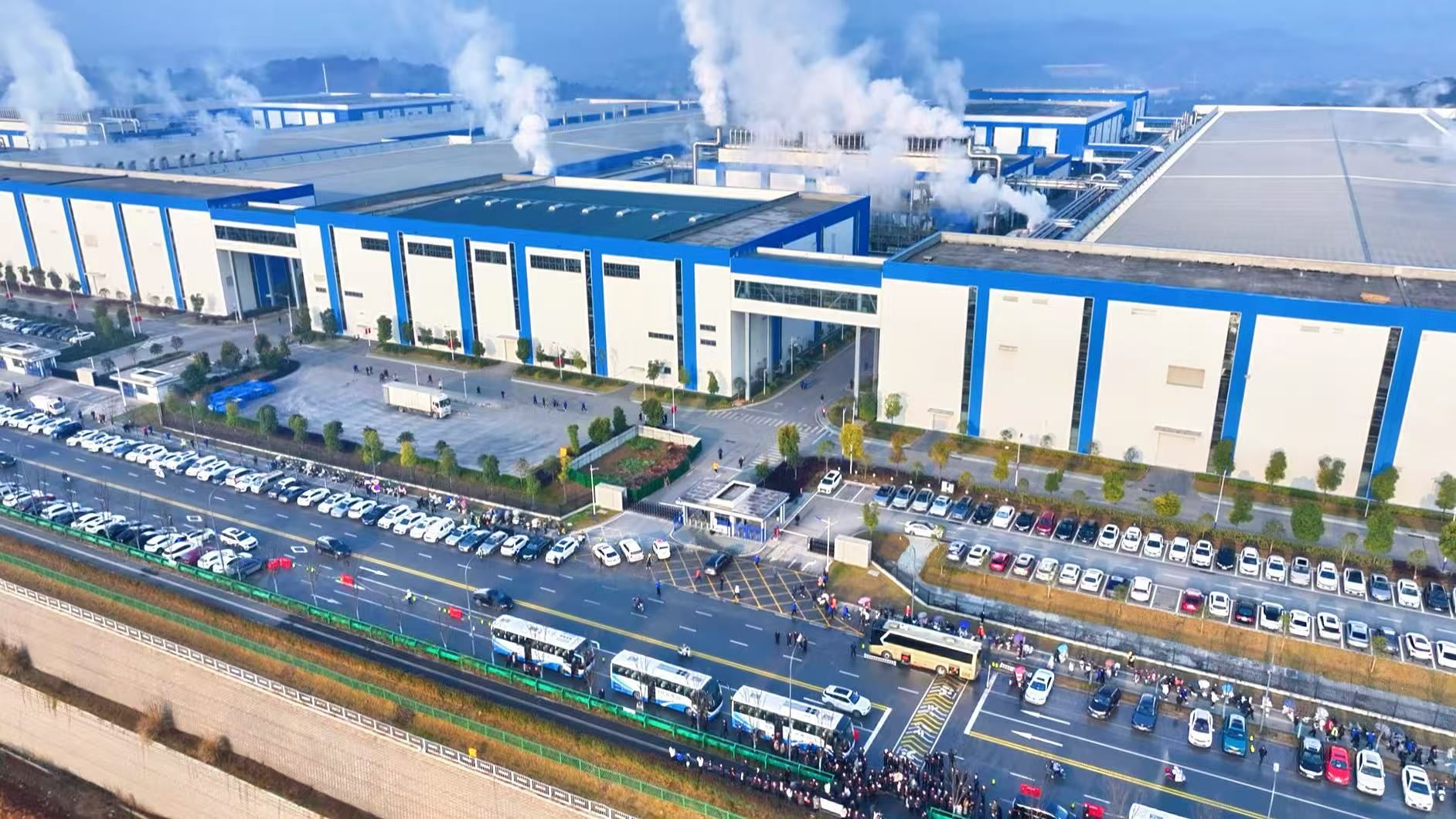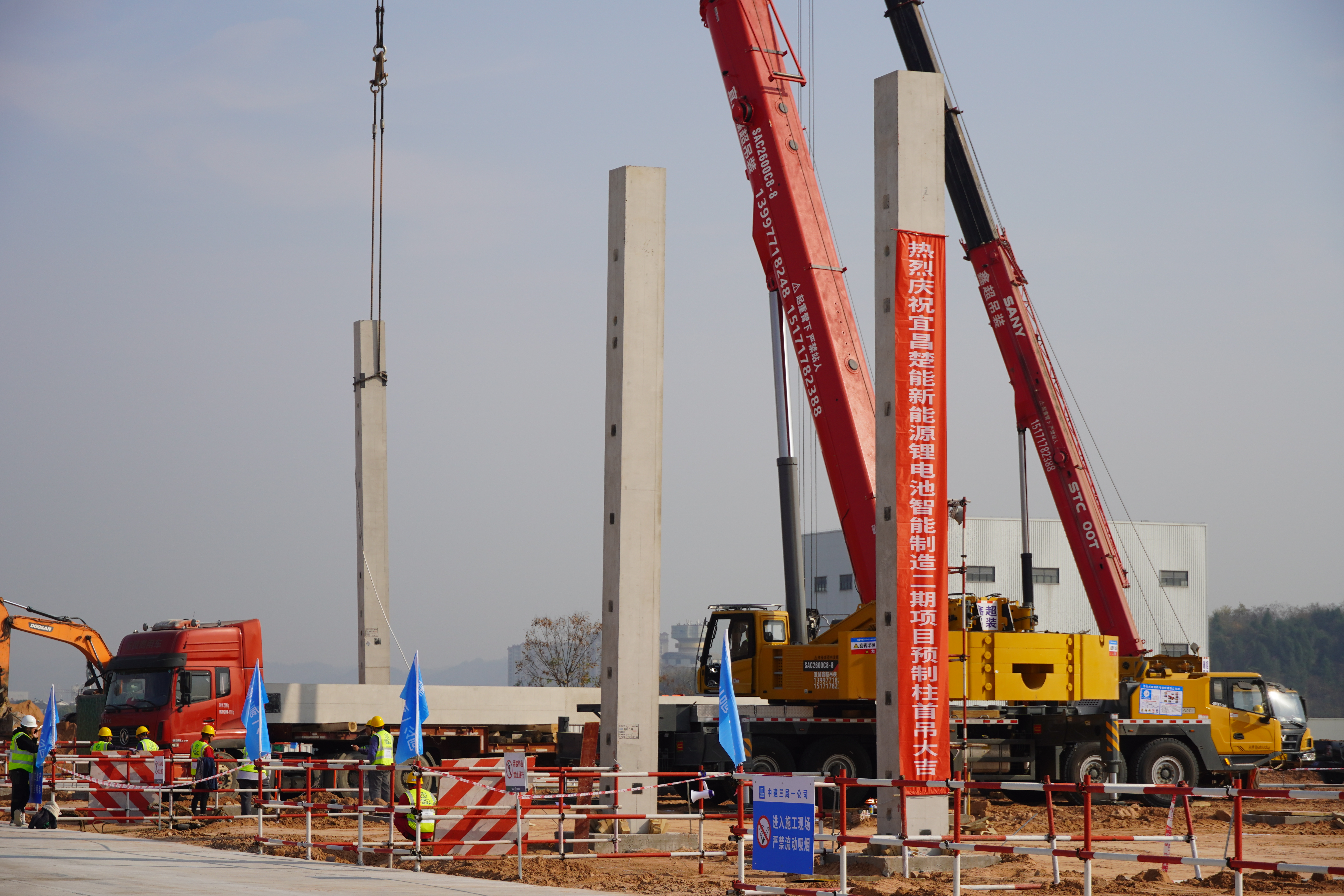 “目前我们2号地块5号电芯车间的预制柱已经全部吊装结束,下一步计划推进钢结构的吊装及6号、7号电芯车间的预制柱吊装,过程中穿插电芯车间的金刚砂地坪施工,全部人员加班加点赶在春节前完成主体结构的封顶。”宜昌楚能新能源创新科技有限公司土建工程师李言丰介绍道。据悉,该项目总投资220亿元,规划年产能80GWh,主要生产新一代动力电池、储能电池及PACK模组,建成投产后预计可实现年产值约220亿元,提供就业岗位6000个以上。