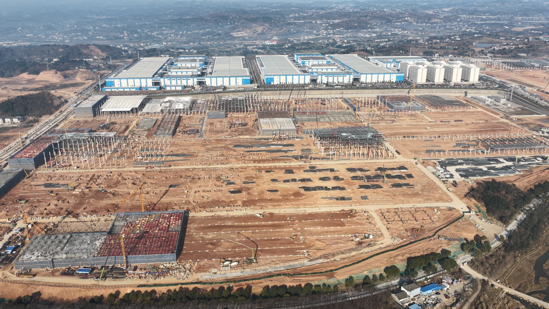 位于夷陵区龙泉镇的楚能新能源宜昌80GWh全新一代锂电池项目工地上,近1300名工人与近200套机械设备协同作战、昼夜施工,一派热火朝天的建设景象。作为夷陵区新能源产业的龙头项目,自去年9月开工以来,该项目始终保持高速建设态势。
