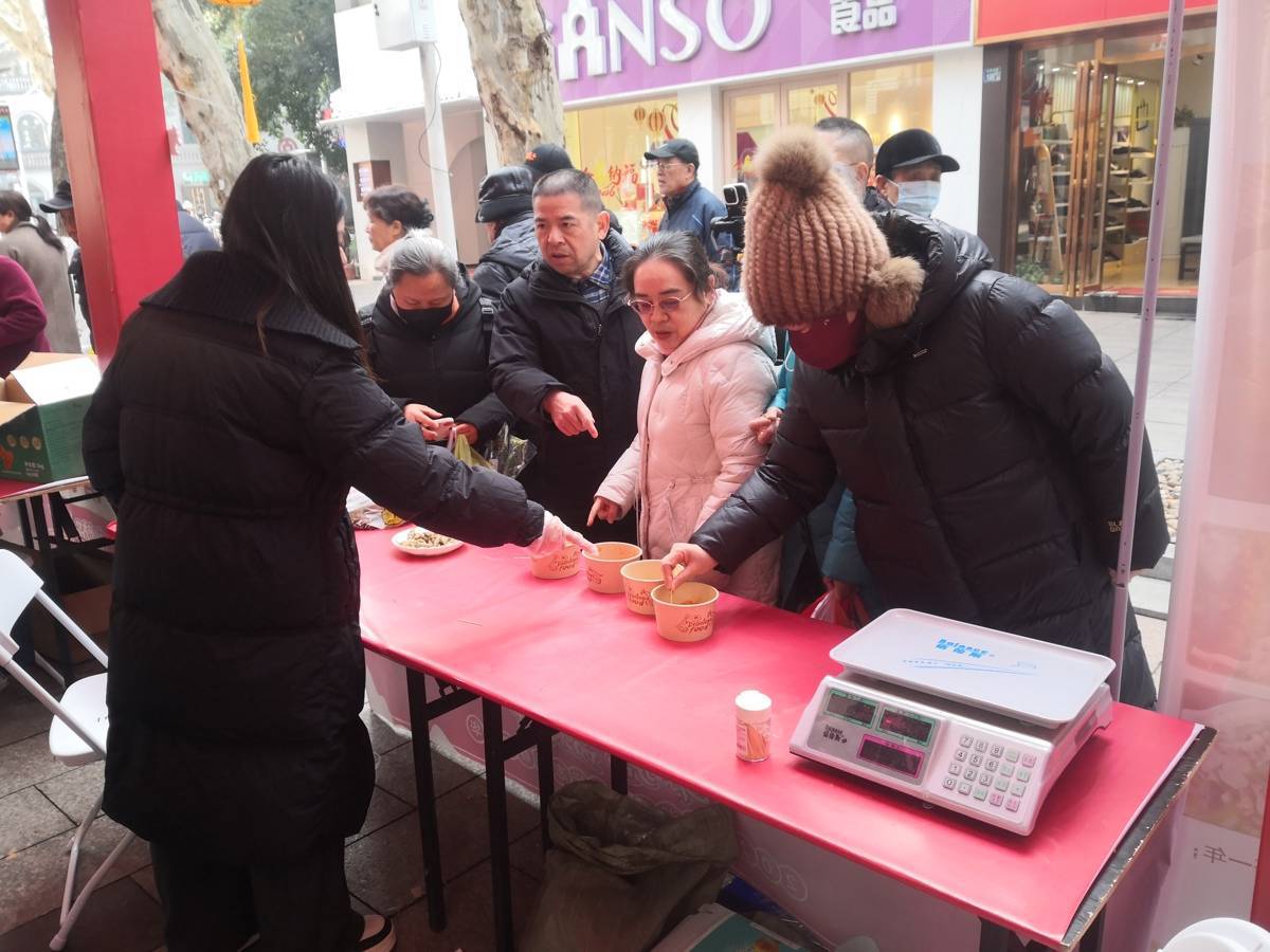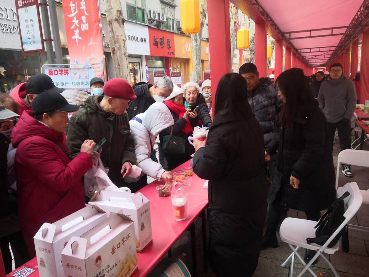 市民竞相咨询、品尝“岳口芋环”(通讯员徐飞摄)