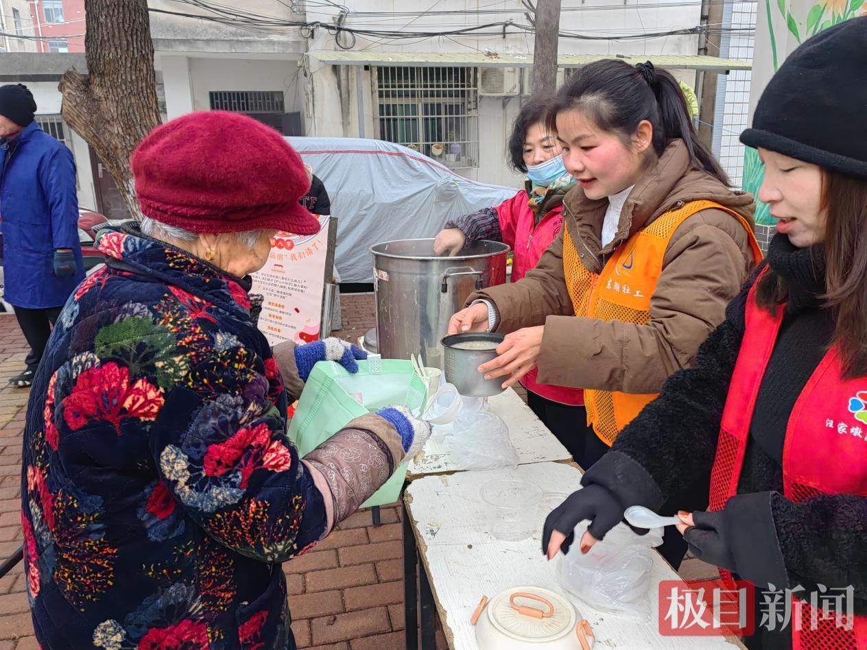腊月初八,陶店乡望城村志愿者早早熬制腊八粥,上门走访困难、独居、空巢老人,将米香与关怀送到老人手中;小小汊湖村志愿者策划主题活动,邀请退休老干部与独居老人们齐聚团圆,还带着亲手熬制的腊八粥、包面和汤圆,挨家挨户走访行动不便的独居老人。
