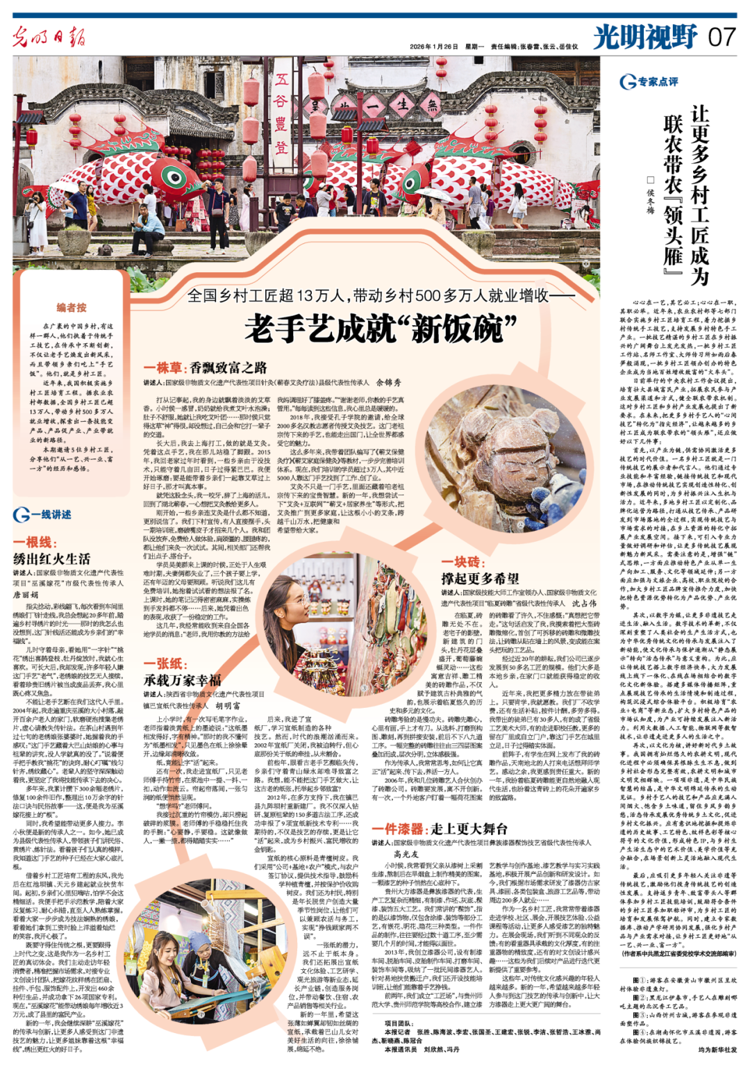 《光明日报》记录的是向下扎根的温度——余锦秀让技艺在乡土间传承,让非遗“活”在百姓的日常生活中。她的故事里,蕲艾是谋生的手艺,是温暖的关怀,是改变个体命运的力量,。