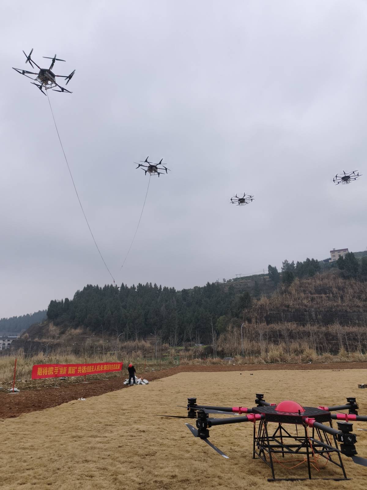 湖北日报讯(记者何凡、通讯员秦一琛)将300公斤的6袋水泥吊运到十多米的高空,轻松自如地玩起“大摆锤”。1月31日,翼安科技X600重载无人机新品首发会在宜昌市夷陵区举行。该公司宣布,自主研发的300公斤级大型载重无人机已实现量产。